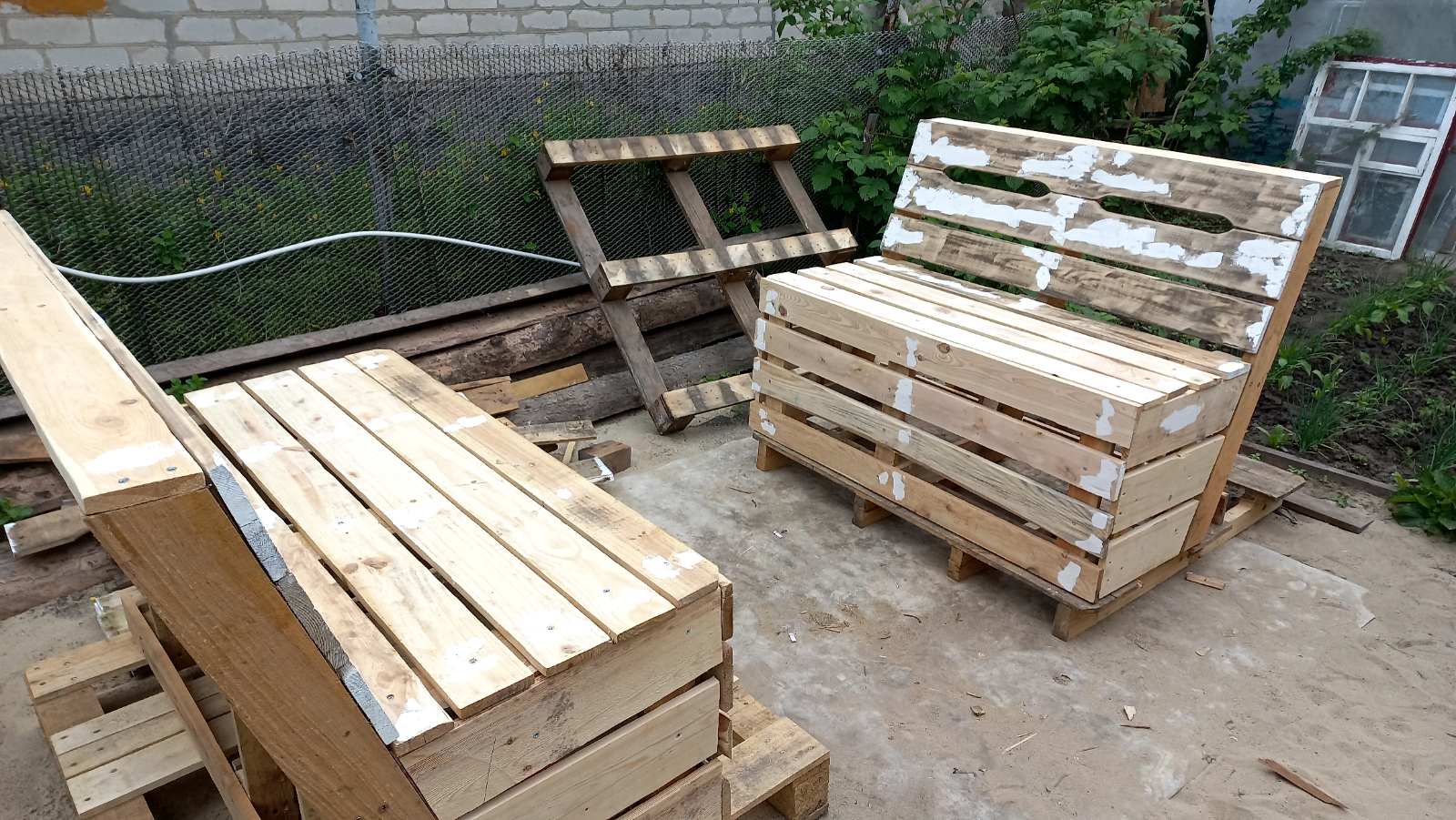 Замовлення: Зробити 2 Лавки та столик на 6 осіб з палет Замовника.